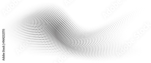 Flowing Wave Dot Halftone Pattern: Curve Gradient Shape on Transparent Background. Suitable for AI, Tech, Network, Digital, Science, and Technology Themes.