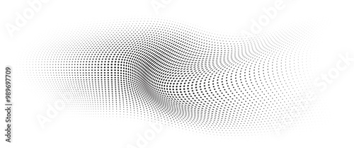 Flowing Wave Dot Halftone Pattern: Curve Gradient Shape on Transparent Background. Suitable for AI, Tech, Network, Digital, Science, and Technology Themes.