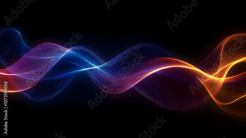 Flowing waves of neon blue and purple light on a dark background, forming an elegant, futuristic motion design.