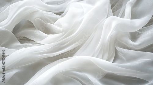 Flowing white chiffon fabric waves with a light, airy texture, soft transparency, and delicate natural movement.