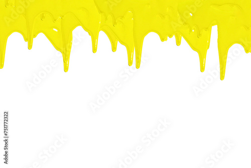 flowing yellow paint on transparent background. melting down paint on white transparent background