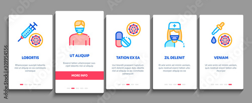 Flu Symptoms Medical Onboarding Mobile App Page Screen. Chills And Fever, Cough And Runny Nose, Flu Virus In Lungs And Stomach Concept Illustrations