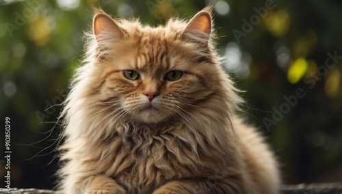 Fluffy Cat Basking in the Wind A Playful D Clipart.