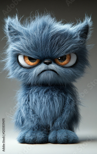 Fluffy Cats and Birds with Adorable Angry Expressions in Vibrant Colors, Highlighting Humorous and Playful Artistic Designs