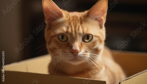 Fluffy kitten staring at camera with cute whiskers and striped fur generated by AI