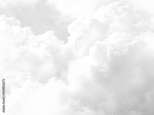 Fluffy White Clouds, Overcast Sky Backdrop, Atmospheric Nature Elements, Weather and Climate Background.