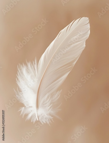 Fluffy White Feather Floating in Soft Light with Gentle Shadows