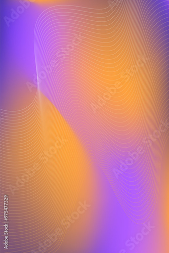 Fluid abstract background, with beautiful orange and purple gradient colors and harmony lines. Gradient Mesh background