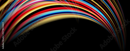Fluid color swirls on black. Modern background with trendy design