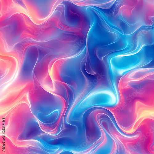 Fluid holographic swirls with vibrant neon colors like pink, blue, and purple, seamlessly blending into an abstract glowing design, with a futuristic and ethereal feel.