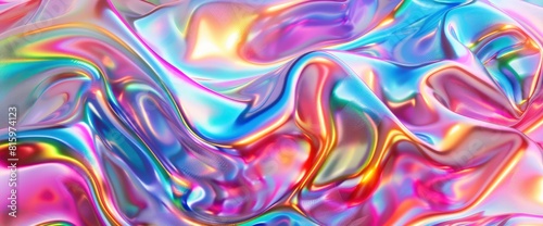 Fluid Shape Elements And Holographic Geometric Shapes For Trendy Design In 3D Rendering Exude A Sense Of Modernity And Sophistication, 3D Rendering