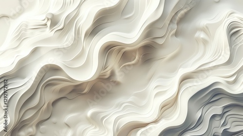 Fluid shapes and soft lines intertwine in neutral white colors, evoking a sense of tranquility and depth in the composition. Natural texture.