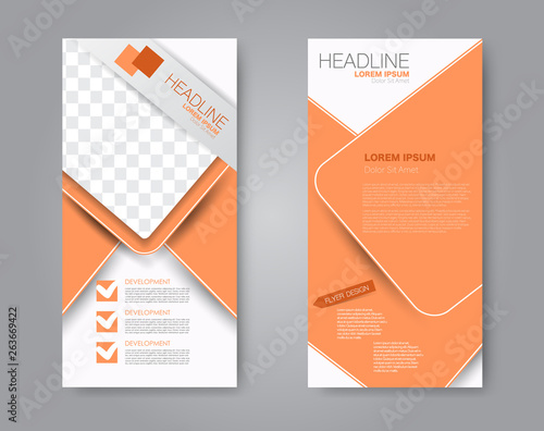 Flyer template. Vectical banner design. Modern abstract two side brochure background. Vector illustration. Orange color.