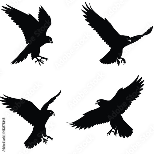 Flying birds silhouettes isolated on white background, vector. Set of flying birds, illustration.