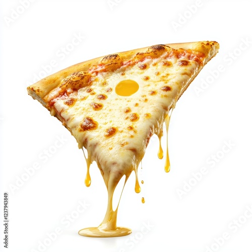 Flying pizza slice with golden garlic butter sauce dripping dynamically, isolated on a white background