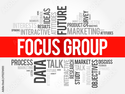 Focus Group is a group interview involving a small number of demographically similar participants, word cloud concept background