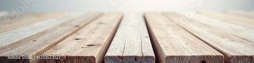 Focus on weathered wooden slats, blurred background, pristine white, furniture, park