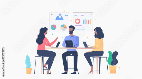 Focused discussion between an Indian software developer and his female team about a new financial software project