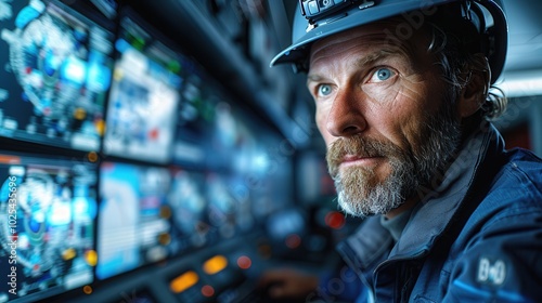 Focused Engineer Operating High-Tech Control Room