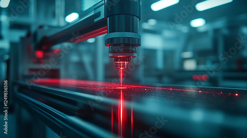 Focused laser beams cutting through a high-tech industrial setting, symbolizing precision, innovation, and advanced manufacturing processes with a bright modern tone and blank space for captions