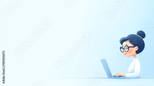 Focused person, working efficiently on laptop, flat design illustration