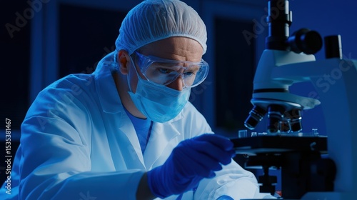 Focused Scientist Using a Microscope in a Modern Laboratory