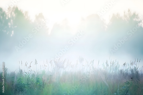 Fog in the field. Evening nature summer with white fog.