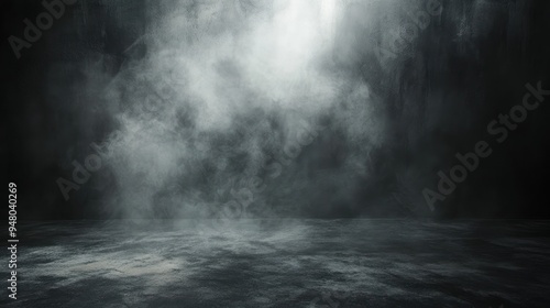 Foggy and Dark Room with a Spot Light and Concrete Floor