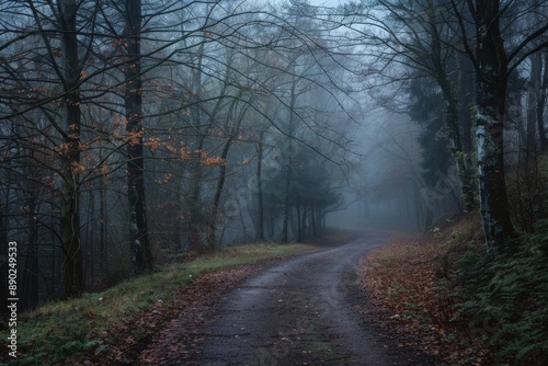 Foggy Forest Road on a Cloudy Day