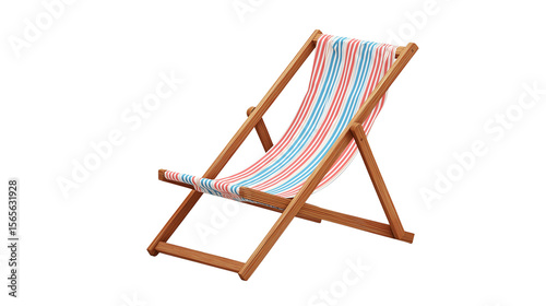 Foldable beach chair with striped fabric, simple design, white background, PNG