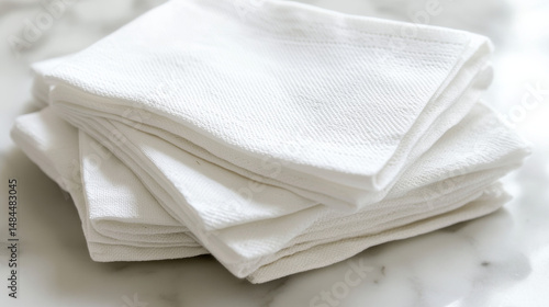 Folded white napkins displaying a fibrous texture and natural shadowing.