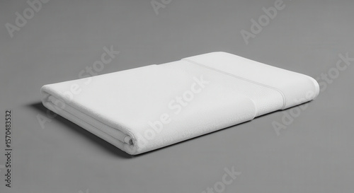 Folded White Terrycloth Towel on a Gray Background with Detailed Texture and Shadows
