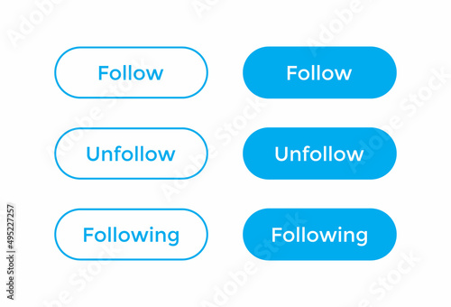 Follow, Unfollow, and Following Button Icon in Flat Style