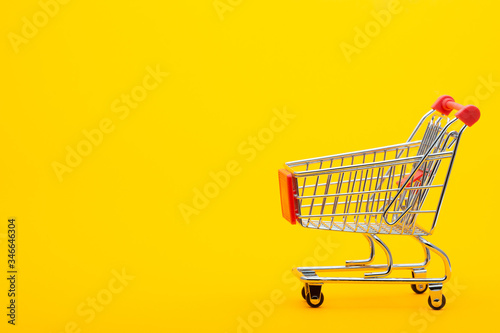 Food cart on an orange background, empty place for an inscription