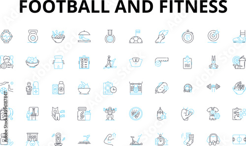 Football and fitness linear icons set. Agility, Endurance, Power, Strength, Stamina, Speed, Coordination vector symbols and line concept signs. Flexibility,Cardio,Muscles illustration