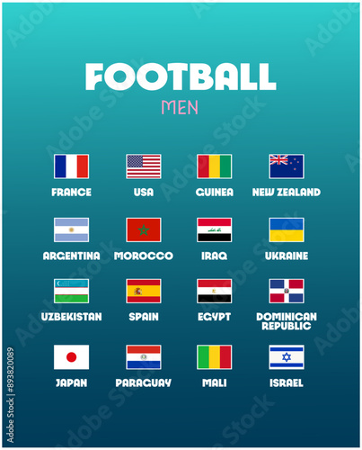 Football Men Flags Emblem Games Sport 2024 Abstract Design Teams Countries Symbol Logo Vector Illustration