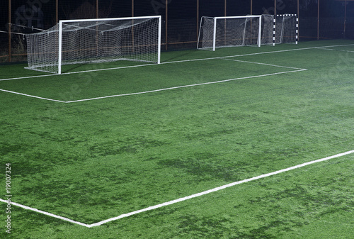 Football pitch with tree goals