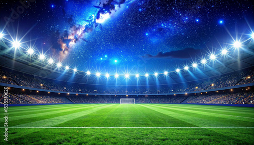 Football stadium in space. An imaginary stadium is modelled and rendered.
