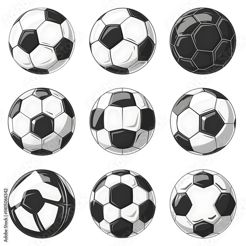 Football Variations: A collection of meticulously crafted footballs, each showcasing its unique design, meticulously rendered for use in sports-related projects or creative design.