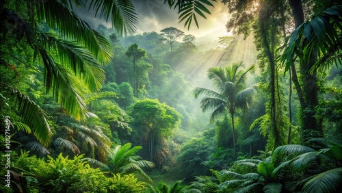 Forced perspective Southeast Asian rainforest with deep jungle