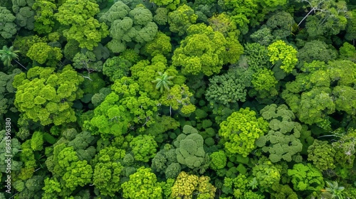 Forest canopy captures co2, green trees promote carbon neutrality and zero emissions in ecosystem