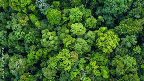 Forest canopy from above, showing dense green foliage