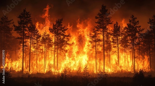 Forest fire at sunrise intense blaze illuminating trees in nature's fiery display