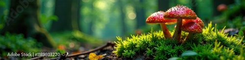 Forest floor covered in moss and psilocybin mushrooms, psychedelics, moss, mushroom