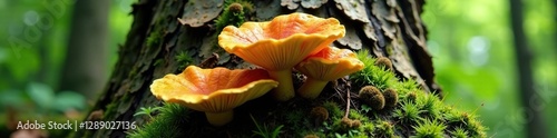 Forest fungi spread across a large tree's surface, organic, tree bark