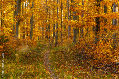 Forest paths in autumn colors in the Tricity Landscape Park, Gdansk, Poland