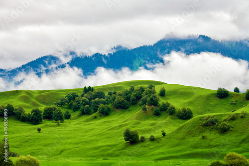 Forests on the Meadows cloudily in valley grassland scenic spot of Nalati, Xinjiang Uygur Autonomous Region, China.