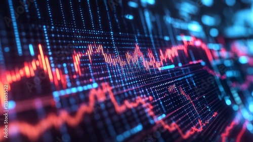Forex stock market hologram, rising and falling candlesticks dynamics. Concept of buy and sell, online trading, trend and finance. 3D rendering illustration
