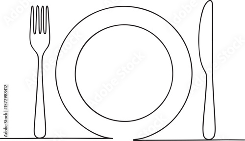 Fork Knife and Plate Line Drawing for Restaurant and Culinary Design