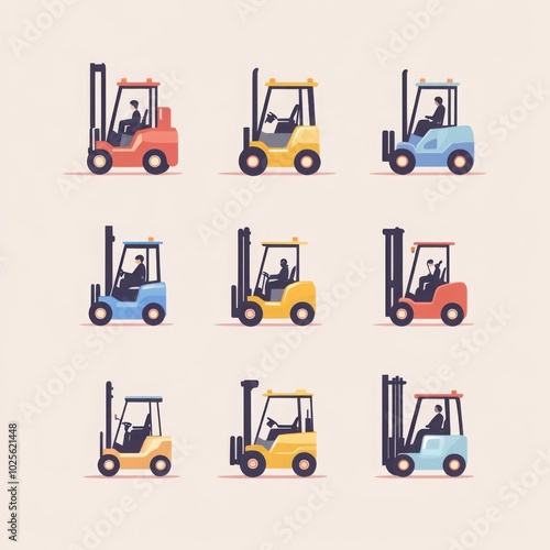 Forklift vector art set flat color minimalist, with copy space